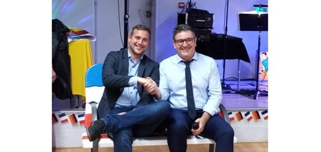 (links BGM Andreas Schönemann und rechts BGM Éric Menassi (Trèbes))